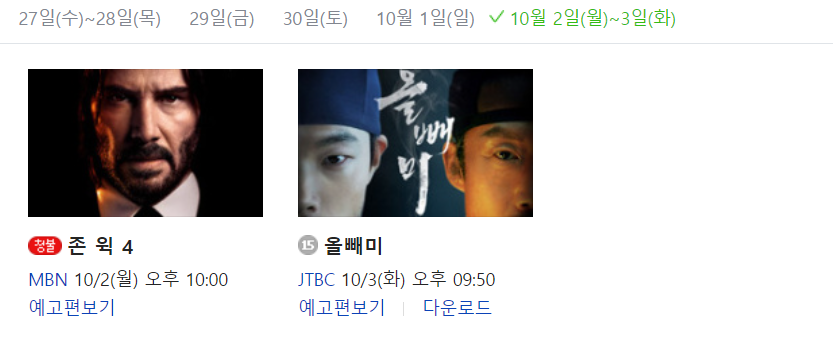 참고로 OCN에서는 다음 영화들이 준비되어 있습니다.