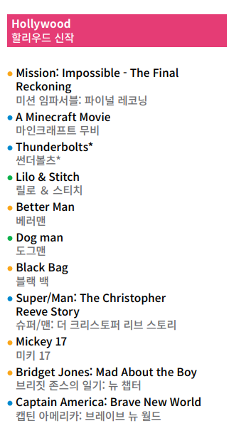 한국영화도 물론 있고요 아이들이 보기 좋은 가족영화도 준비되어 있습니다