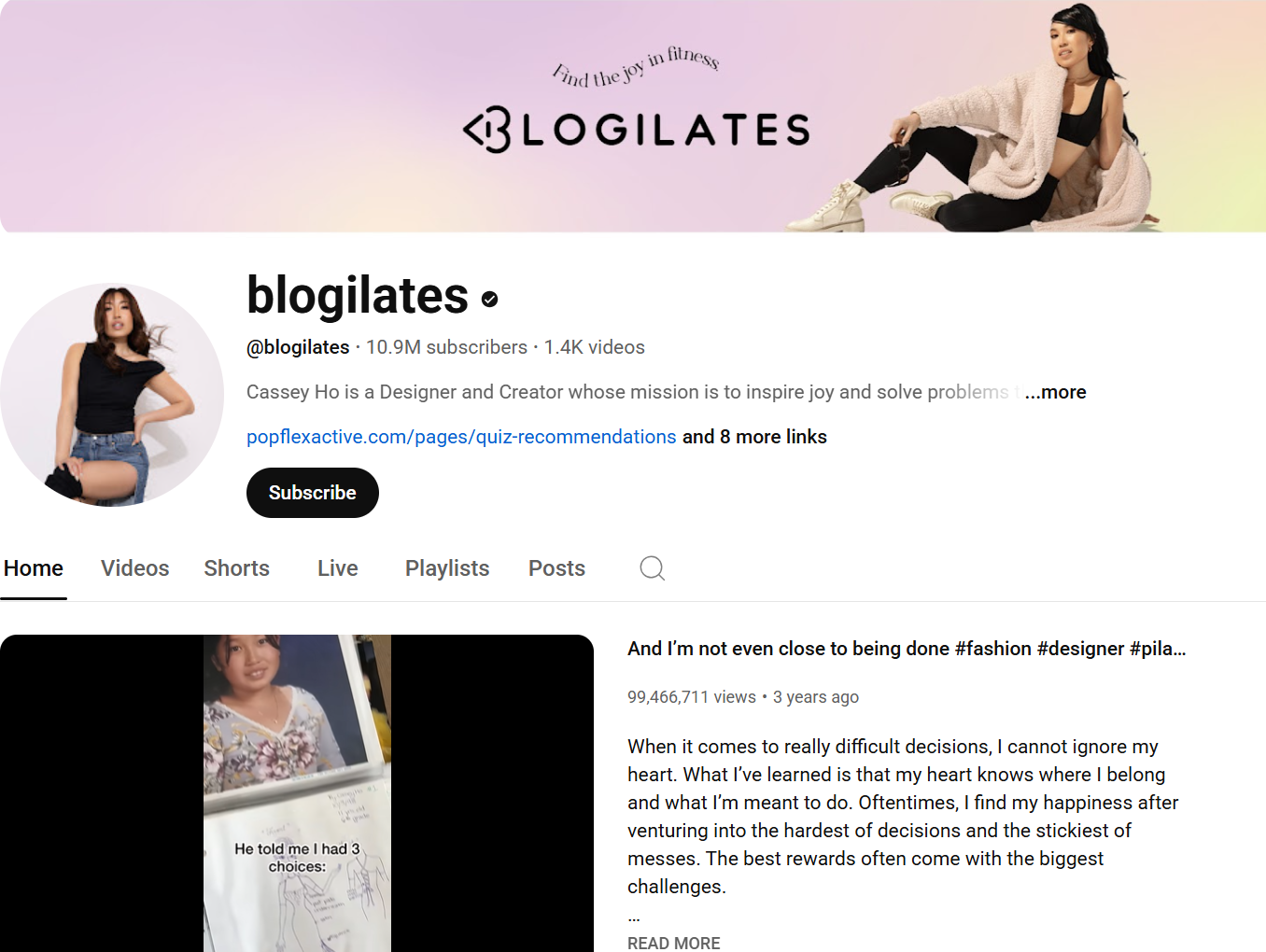 Blogilates (캐시 호) – 친근하고 말이 많은 스타일 / 구독자 1000만